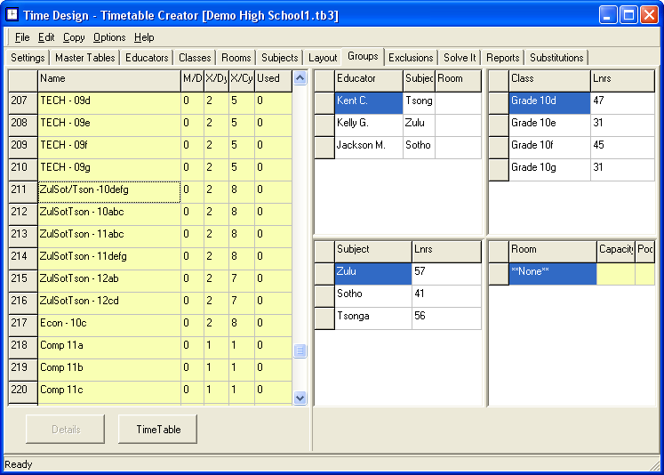 Clicking on the Details button, we are able to see all the players involved in this group. This is also where you indicate which educator will be teaching which subject in the complex groups.