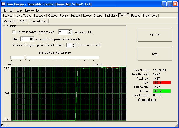 Once all errors are resolved, we simply click on the 'Solve It' button and wait a few minutes, in the above case, 21 seconds.